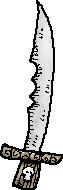 The Sword is an old pirate sword, with a curved, sharp blade and stylised with a small skull image and multiple carvings in its wooden hilt.